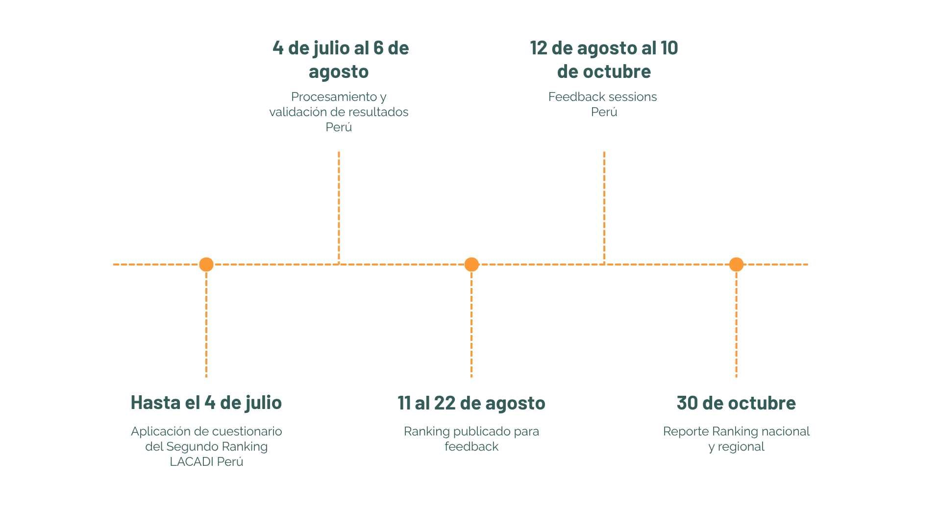 Para participar en el Ranking LACADI 2025 las empresas deben diligenciar un cuestionario dirigido a entidades del sector financiero, asegurador, bursátil y emisores de valores del sector real en Perú. Este cuestionario cubre las dimensiones de Gobernanza, Estrategia, Gestión de riesgos y metas y métricas. Las empresas que decidan participar en este estudio tendrán 15 días para responder el cuestionario.